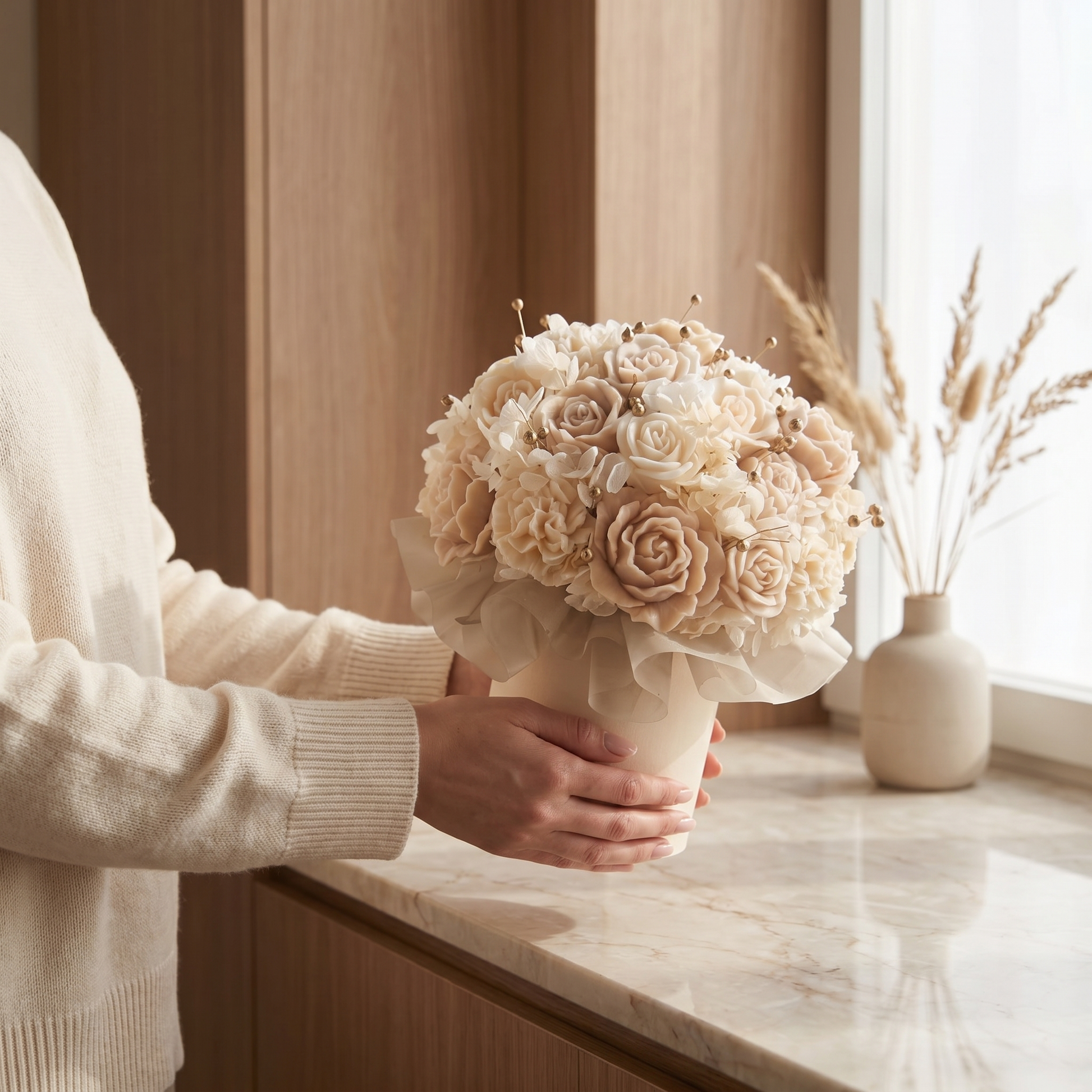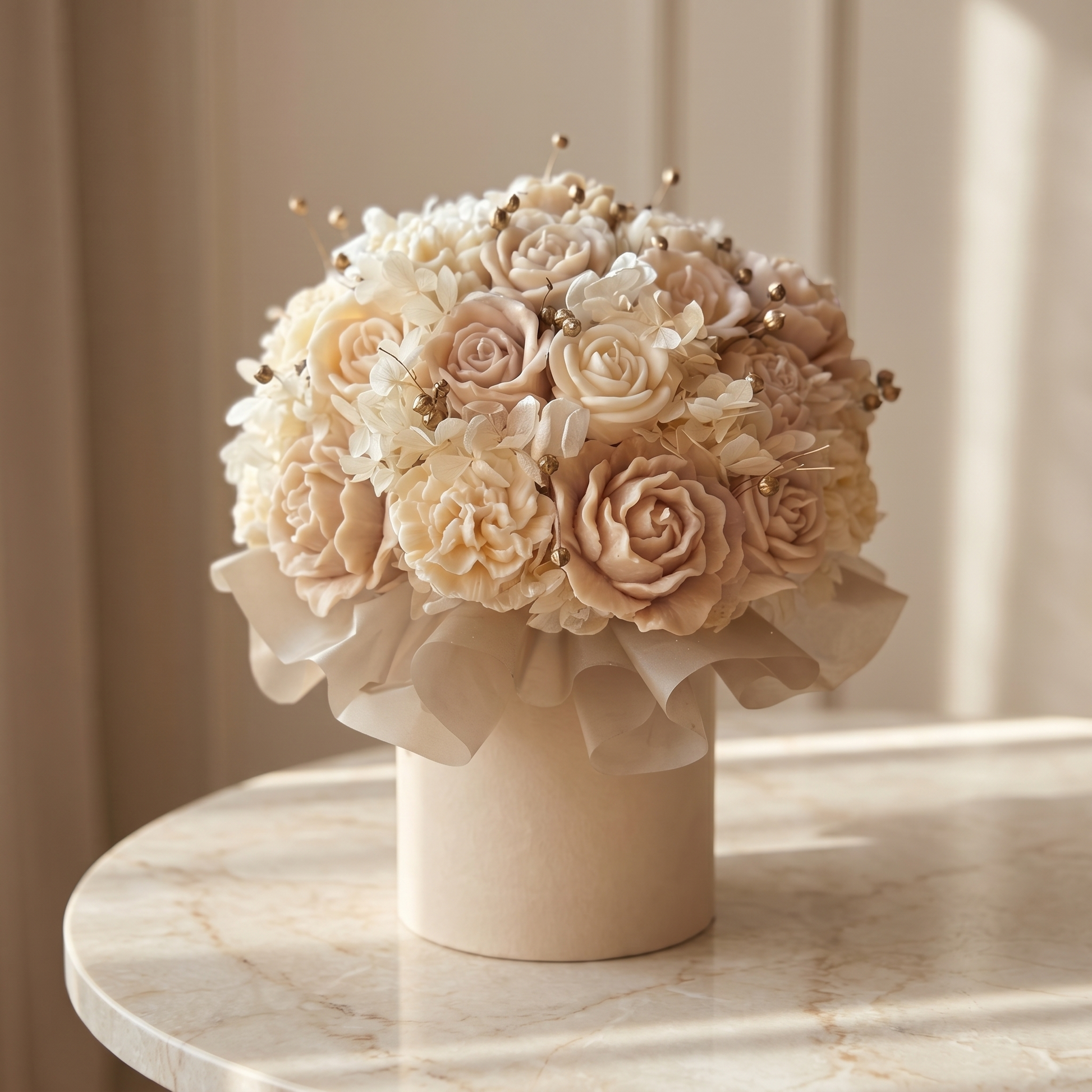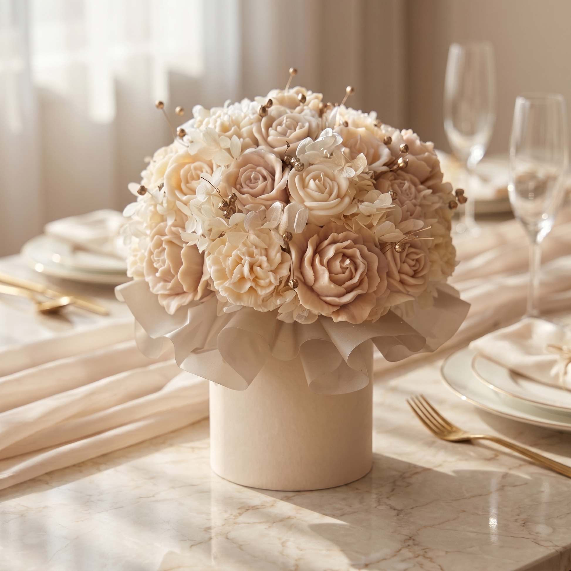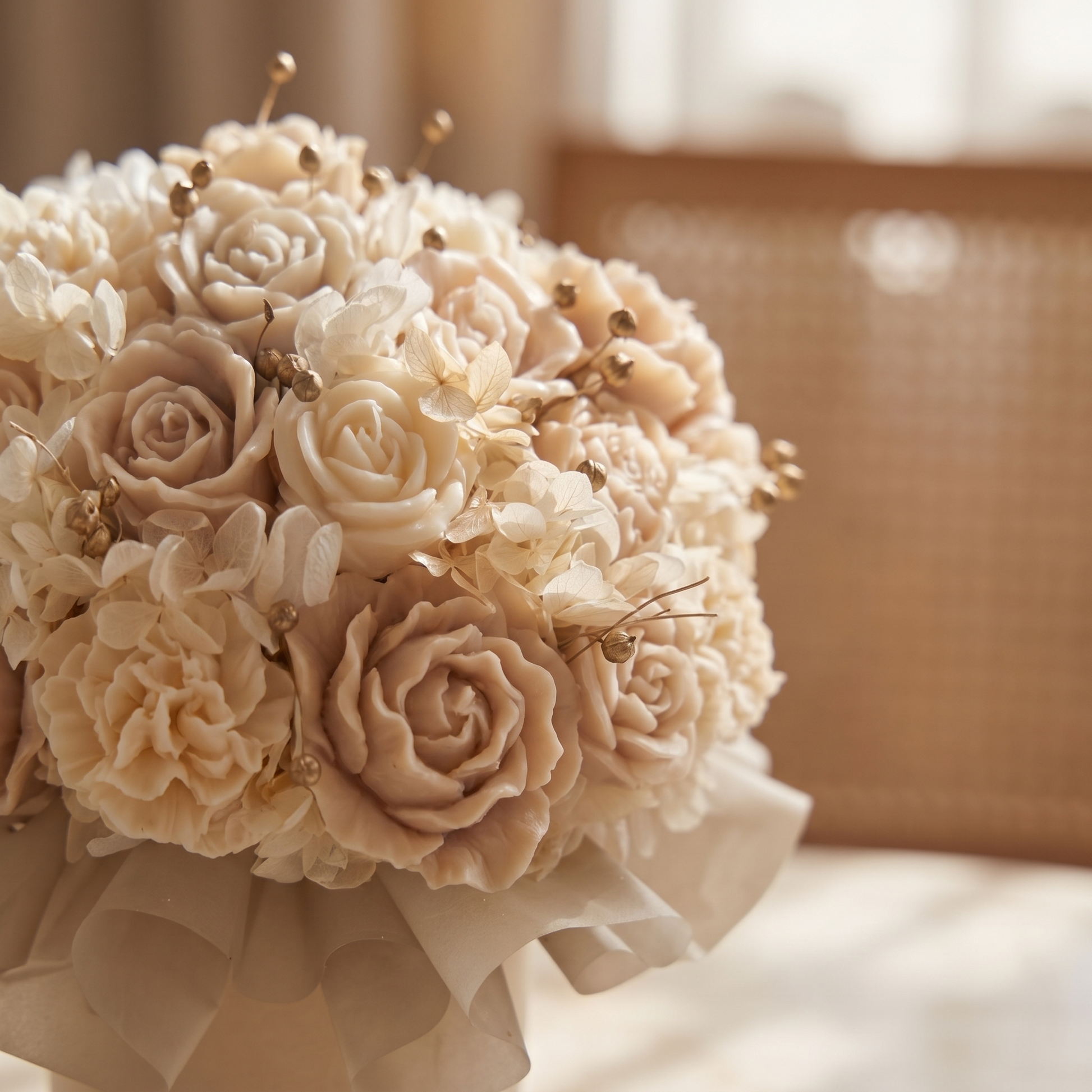 • Kompozycja z ręcznie formowanych świec w kształcie kwiatów
